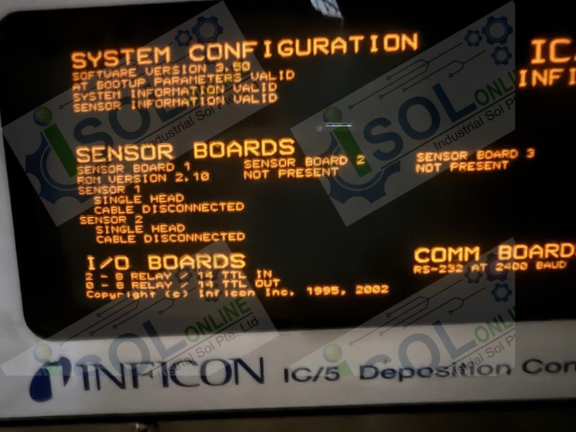 Inficon IC/5, IC/5 Deposition Controller, Inficon Deposition Controller Ver. 3.50, Sensor Board ROM Ver. 2.10, Inficon IC/5 software Ver. 3.50, Thin Film Deposition Controller, Semiconductor Process Controller, Industrial Deposition Control, Inficon Precision Control, Inficon Switzerland