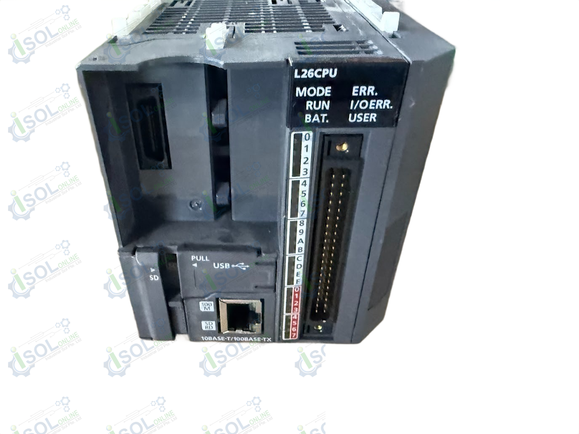 Mitsubishi MELSEC-L Series L26CPU is a high-performance PLC CPU module designed for advanced industrial automation and control applications. Supplied with the L6EC end cover, this genuine Mitsubishi unit ensures secure installation and system integrity within MELSEC-L control racks. It delivers fast processing, reliable control, and seamless integration with Mitsubishi I/O and network modules. Ideal for manufacturing lines, machinery control, and factory automation systems requiring dependable PLC performance.