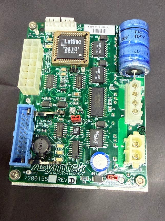 Nordson Asymtek 7200155, 7200155 Rev D, Asymtek Servo Controller, 325 Ultra TT Spare Part, Dispensing System Motor Board, Asymtek 7200155 Board, Industrial Servo Motion Control.
