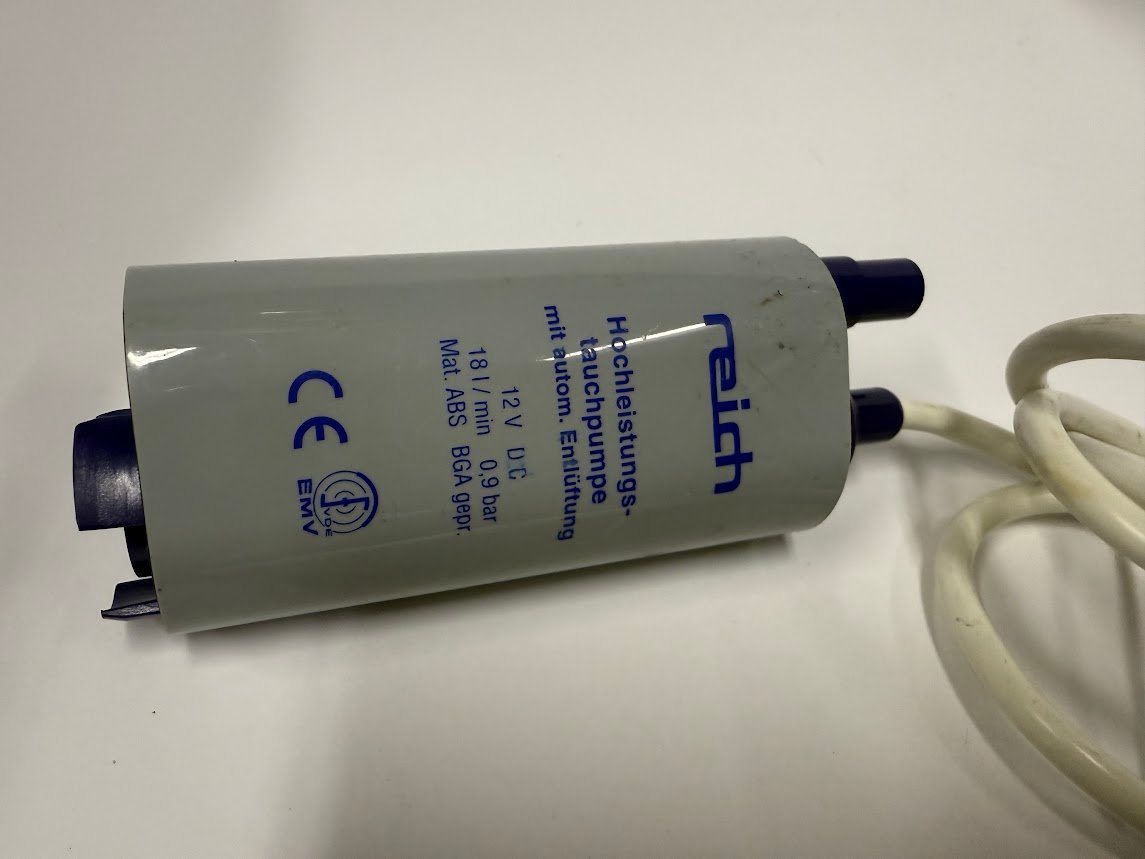 REICH 12V Pump, 18L/min Submersible Pump, Caravan Water Pump, BGA Gepr Drinking Water Pump, REICH 0.9 Bar Pump, 12 Volt ABS Pump, Motorhome Water System, Automatic Vent Pump.