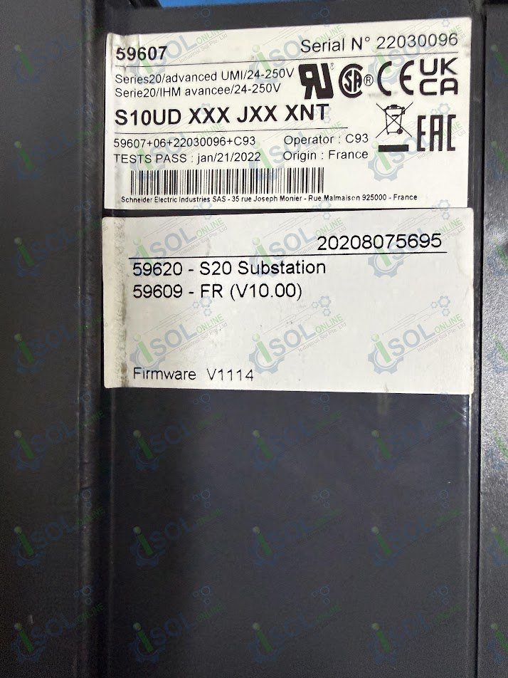 Schneider Sepam 59607 S10UD XXX JXX XNT 59620-s20 59609-FR V10.00 59646 & 59645