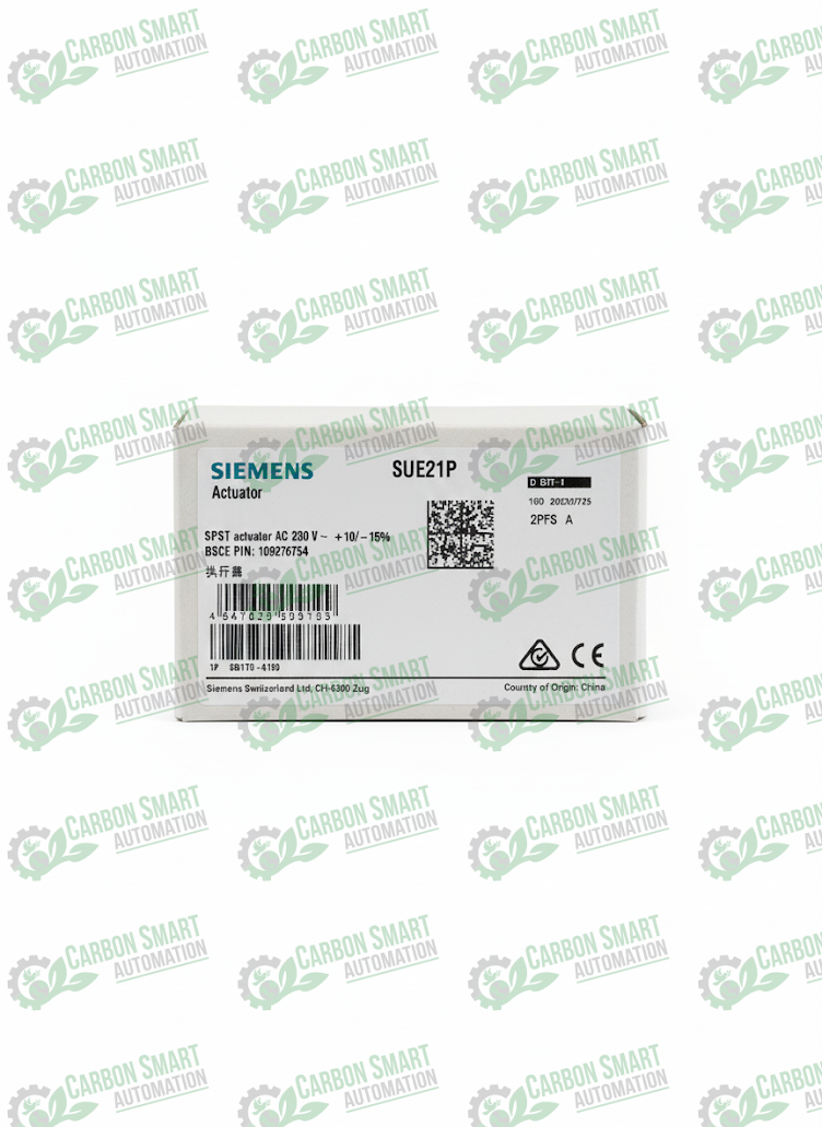Siemens SUE21P SPST actuator (P/N 102976754) is a 230 V AC electromotoric valve actuator designed for on/off control of pressure‑independent combi valves in heating, ventilation, and air conditioning systems. It features a 2‑position SPST control signal, 100 N positioning force, and a 5 mm stroke for accurate valve operation. With a 0.8 m integrated cable and IP40 protection, it delivers reliable performance for fan coils, cooling/heating zones, and hydronic control applications. Quiet, durable construction and simple mounting make it ideal for commercial and residential HVAC installations.