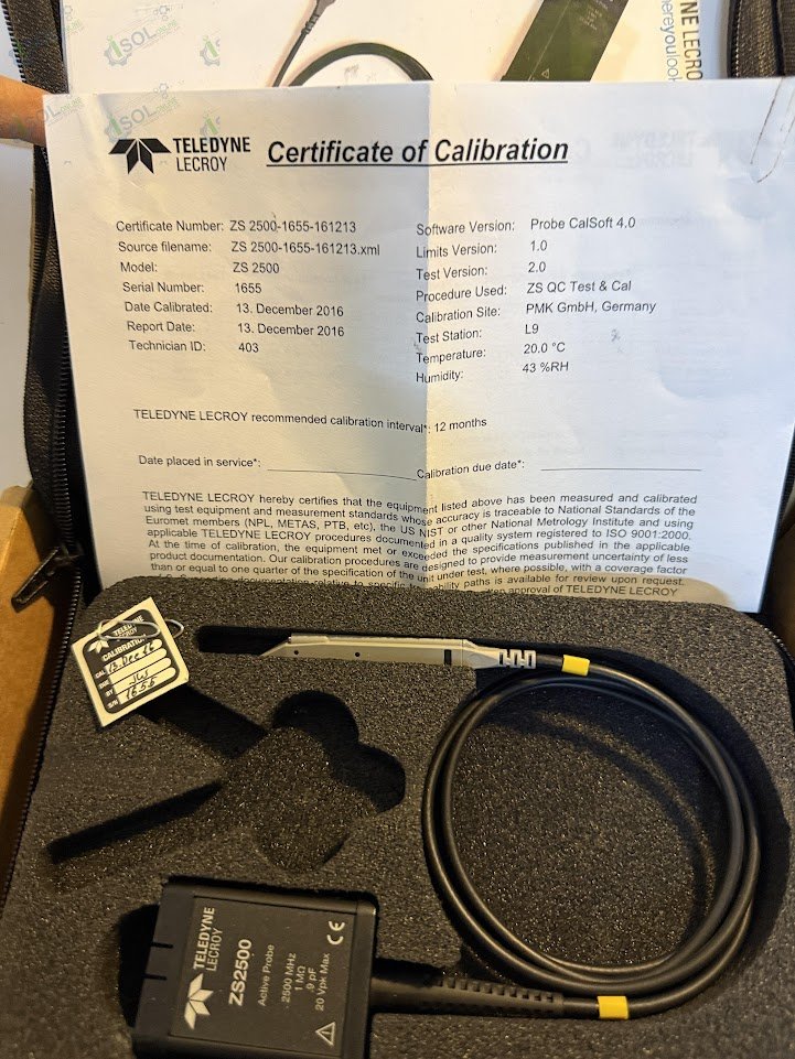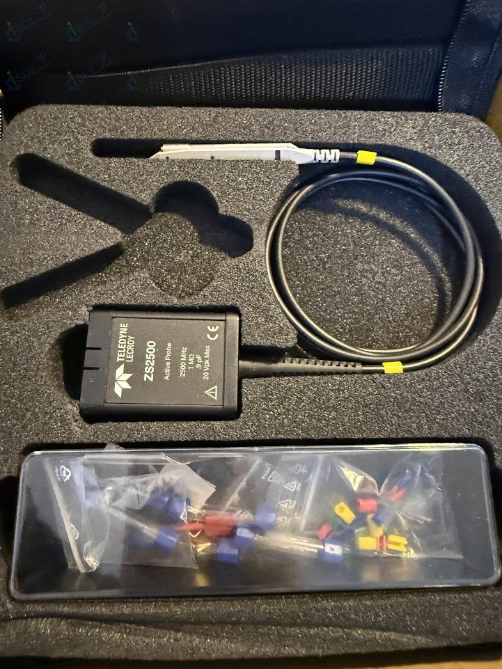 Teledyne LeCroy ZS2500 is a high-performance 2.5 GHz active probe set designed for high-speed signal integrity measurements. Featuring an ultra-low input capacitance of 0.9 pF and a 1 M$Omega$ input resistance, it minimizes circuit loading to ensure accurate waveform capture. This active probe is ideal for debugging fast clocks, data lines, and high-impedance nodes in complex digital designs.