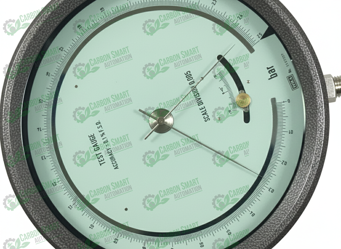 WIKA 342.11.250 is a high-precision Bourdon tube test gauge with a massive 250 mm (10″) nominal size, engineered specifically for laboratory calibration and testing of industrial gauges. This particular model features a 2.5 bar scale range and includes a mirror band scale with a knife-edge pointer to eliminate parallax errors and provide an accuracy class of 0.1%. While primarily a pressure gauge, its